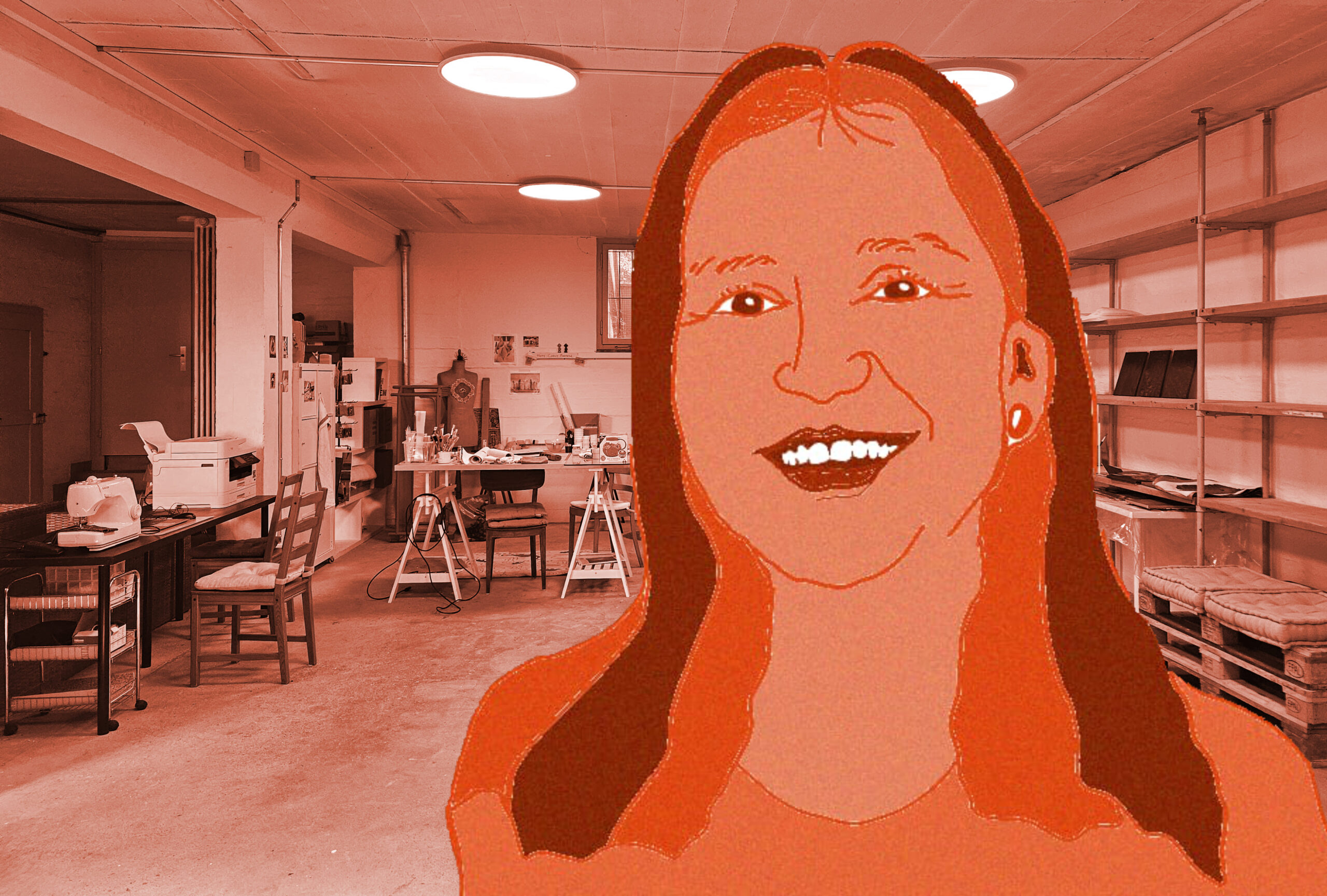Das ist Samantha, auch sie mietet einen Atelierplatz im L29. Zusammen mit Kerstin und Giuli befindet sie sich in der Ausbildung für Gestaltungspädagogik am iac Zürich. Sie treffen sich im Atelier, um die Gruppenaufgaben zu lösen, sich über ihre Projekte auszutauschen und für ein gemütliches Zusammensein. Im Rahmen der Ausbildung hat auch sie einen Workshop mitentwickelt und unterrichtet. Zusammen mit ihrem Gspändli hat sie an den Werktagen den Workshop «Polaroid Lifts» angeboten. Dabei ging es darum zu erkunden, wie sich Polaroidfotos auseinandernehmen lassen und wie die Fotoschicht neu präsentiert werden kann. Auch Holz und Stoff sind Materialen, mit denen sie gerne gestaltet.